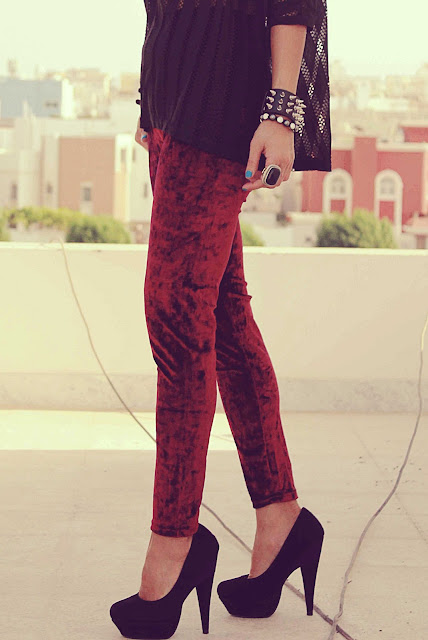 LEATHER JACKET-TOPSHOP, CRUCIFIX T-SHIRT c/o INLOVEWITHFASHION, PUNK SPIKE NECKLACE c/o OASAP, PUNK SPIKE BRACELET c/o ROMWE, PUNK SPIKE ELASTIC BRACELET c/o ROMWE, VELVET LEGGINGS-LOCAL STORE, HEELS-DRAMA QUEEN